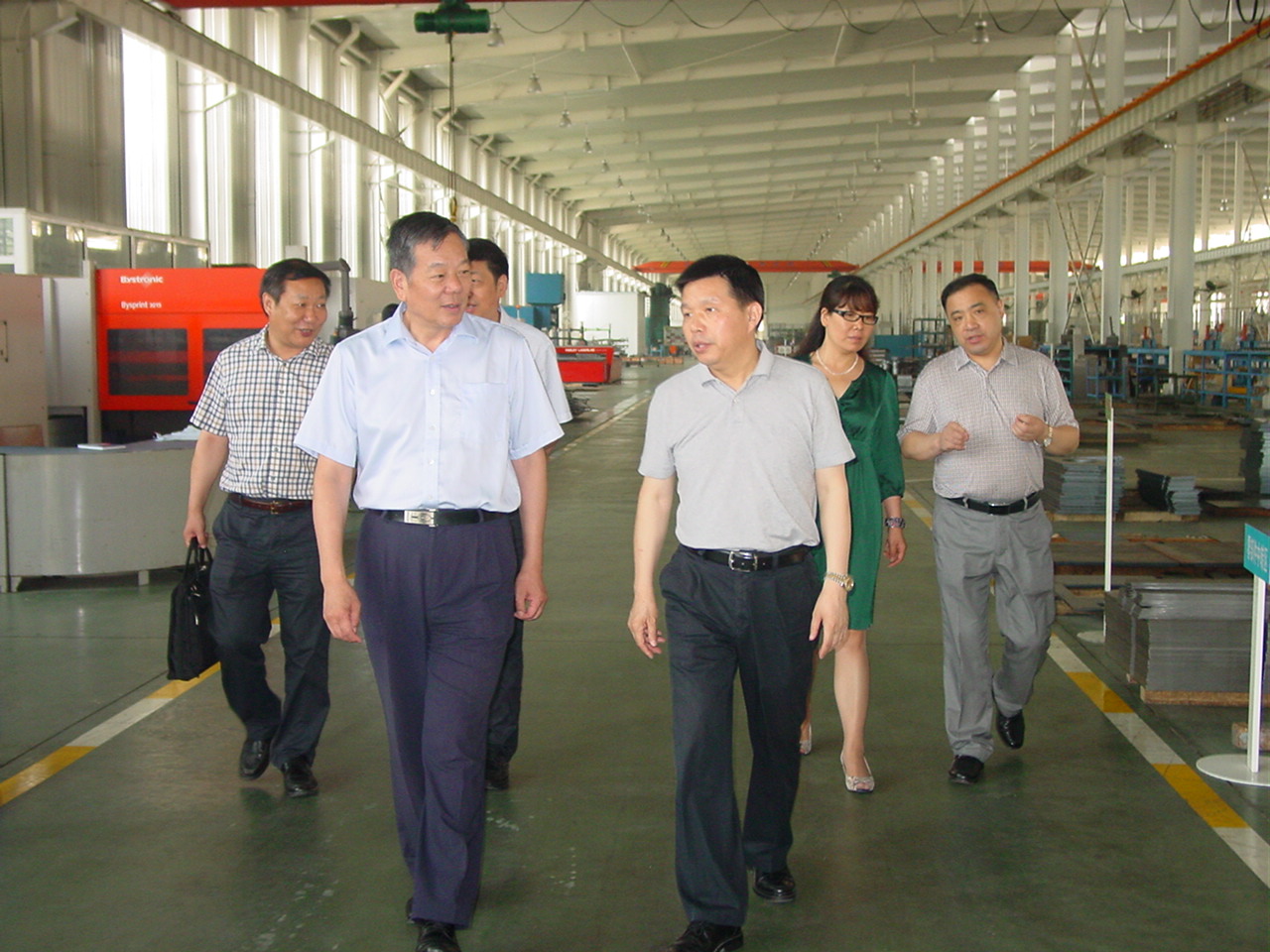 上午9時許,楊紀朝副會長先后到加工分廠和總裝、板件車間,詳細了解生產(chǎn)現(xiàn)場情況。楊副會長邊看邊問,對公司高標準建設廠區(qū)、大力開發(fā)新產(chǎn)品、強化管理、轉(zhuǎn)型升級以及加強職工思想文化建設等工作給予了充分肯定。隨后,楊副會長與市領導和公司負責人進行了座談。座談會上,市委副書記汪發(fā)良,公司董事長沈方勇,分別就全市經(jīng)濟工作情況和天門紡機近年的工作作了介紹。在交流時,汪發(fā)良說:天門紡機在“退城進園”中,創(chuàng)造了天門深圳速度,現(xiàn)在是新廠新氣象。希望紡織聯(lián)合會領導一如既往地支持天門紡機的發(fā)展。楊副會長表示在相關工作中予以支持。