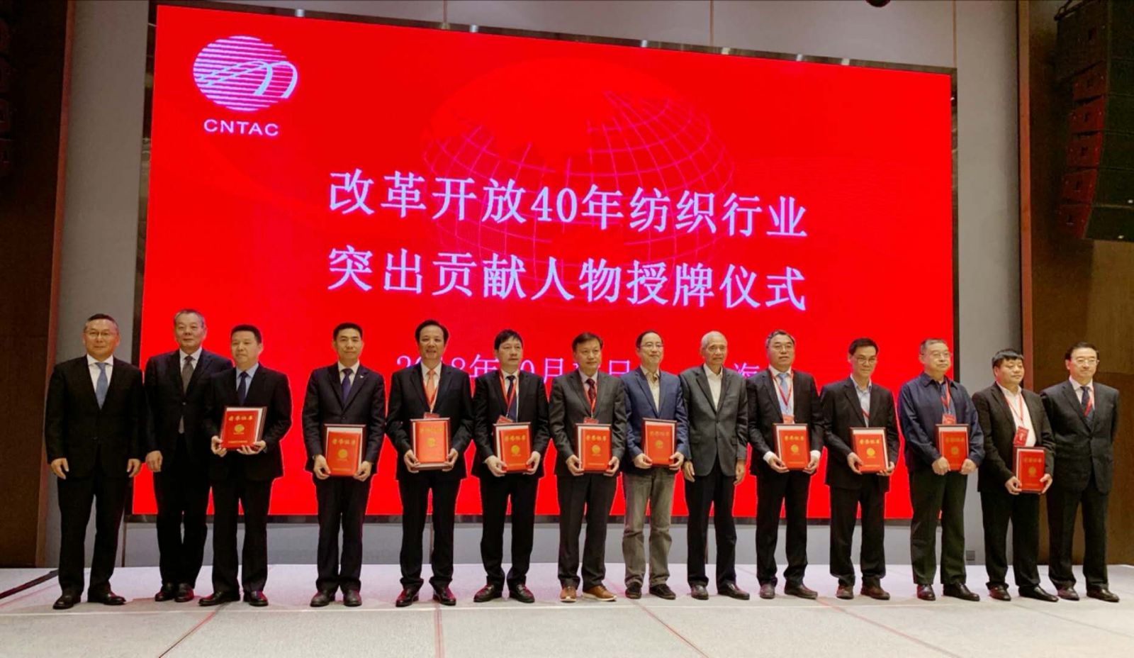 改革開放四十年,紡織工業(yè)歷經(jīng)風雨洗禮,取得了一系列舉世矚目的發(fā)展成就,涌現(xiàn)出一批扎根行業(yè)深處、為行業(yè)發(fā)展貢獻畢生力量的突出貢獻人物。中國紡織工業(yè)聯(lián)合會為樹立責任擔當、凝聚力量的行業(yè)典范,弘揚改革創(chuàng)新、開放包容的時代精神,開展了改革開放四十年紡織行業(yè)突出貢獻人物的評選、表彰活動,并于2018年10月16日在上海召開的第四屆第四次常務理事擴大會上舉行了授牌儀式。湖北天門紡織機械股份有限公司董事長沈方勇有幸成為登臺領獎的代表之一。
