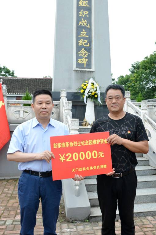 雨霽初晴,風(fēng)清氣爽。2019年6月29日下午,天門紡機50多名黨員和入黨積極分子,懷著崇高的敬意,來到位于天門盧市鎮(zhèn)彭家垴村的烈士紀(jì)念園舉行紀(jì)念中國共產(chǎn)黨成立九十八周年主題黨日活動。盧市鎮(zhèn)委、鎮(zhèn)政府及彭家垴村黨支部主要負(fù)責(zé)人熱情接待并參加了活動。