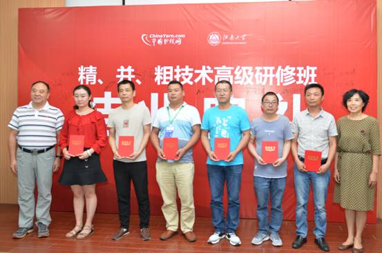 頒發(fā)證書的環(huán)節(jié)中,學(xué)員們從中國紗線網(wǎng)總編王果剛和江南大學(xué)謝春萍老師手中接過蓋著鋼印的結(jié)業(yè)證書,聆聽來自領(lǐng)導(dǎo)們的鼓勵(lì),接受他人的肯定,回想這幾天努力時(shí)灑下的汗水,一切都是值得的。