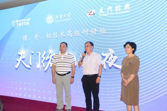 當(dāng)天晚上,學(xué)員們參加了“天門紡機(jī)之夜”晚宴,中國紗線網(wǎng)總編王果剛、江南大學(xué)謝春萍教授、湖北天門紡織機(jī)械股份有限公司品控總監(jiān)樊早斌老師為晚宴致辭。