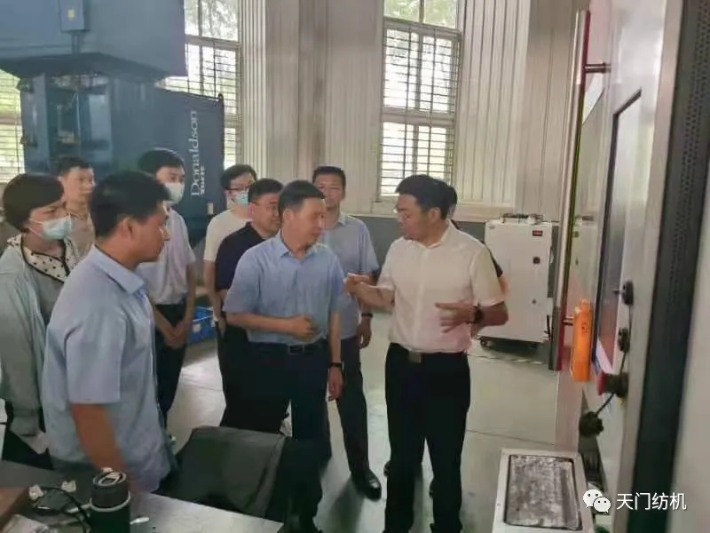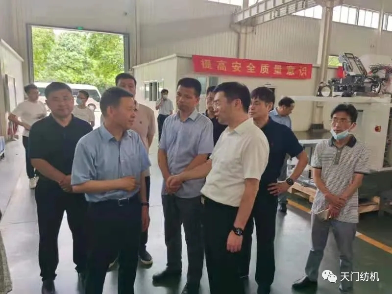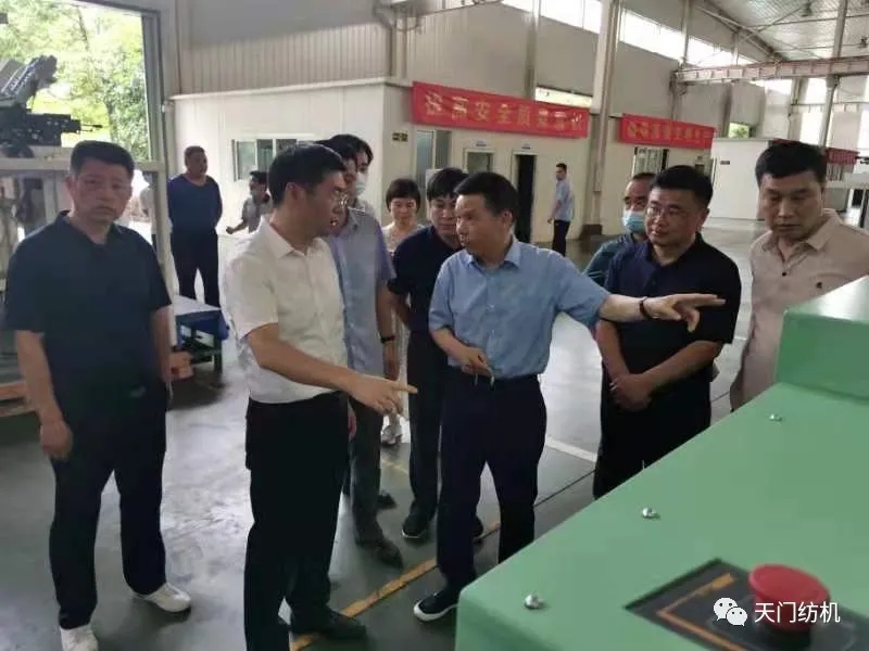 6月15日,酷暑炎熱,天門市委副書記、市長楊興銘,副市長高文博以及市經(jīng)信局、市科技局、市政務服務和大數(shù)據(jù)管理局、市經(jīng)濟開發(fā)區(qū)等相關部門負責人專程來到天門紡機,現(xiàn)場調(diào)研技術裝備改造升級和安全生產(chǎn)工作。