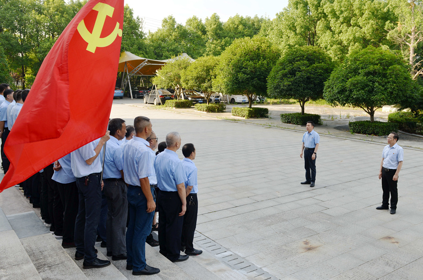 全國(guó)人大代表、天門紡機(jī)董事長(zhǎng)沈方勇在黨員隊(duì)伍集結(jié)時(shí)激情致辭。他說(shuō),中國(guó)共產(chǎn)黨在嘉興南湖一艘紅船上誕生,從50多名黨員發(fā)展成為9000多萬(wàn)名黨員的世界第一大執(zhí)政黨。百年來(lái),中國(guó)共產(chǎn)黨書寫了一部堅(jiān)守初心使命、應(yīng)對(duì)危局困境、經(jīng)受風(fēng)險(xiǎn)考驗(yàn)、戰(zhàn)勝困難挫折、開創(chuàng)民族復(fù)興偉業(yè)的奮斗史。作為一名共產(chǎn)黨員和天門紡機(jī)員工,我們要牢記黨的奮斗史,永葆青春活力,做先鋒模范,起戰(zhàn)斗堡壘作用,為企業(yè)發(fā)展、為建設(shè)富強(qiáng)民主和諧美麗社會(huì)主義現(xiàn)代化強(qiáng)國(guó)貢獻(xiàn)應(yīng)有的力量。