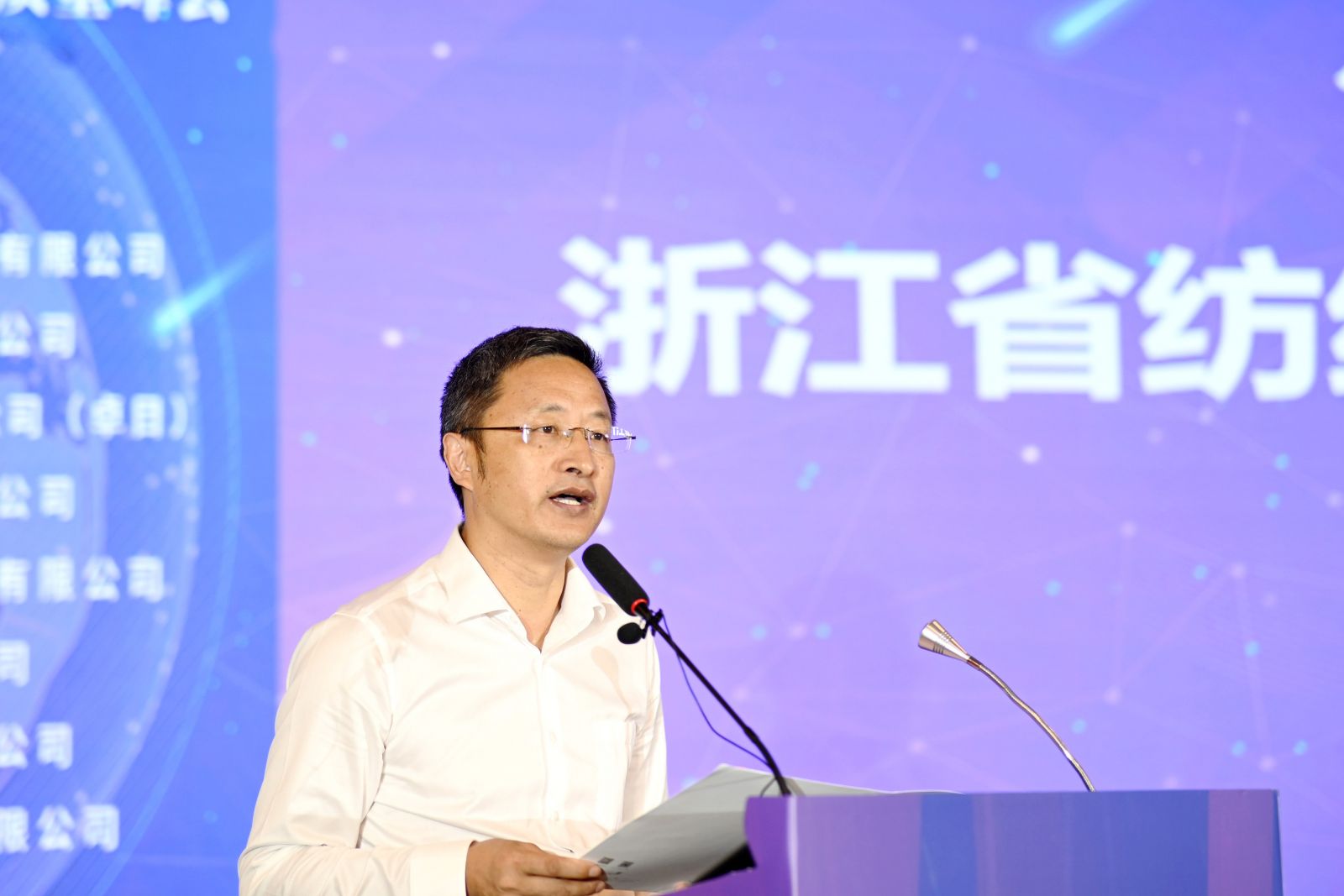 △浙江省紡織行業(yè)協(xié)會副會長兼秘書長陳守榮致辭