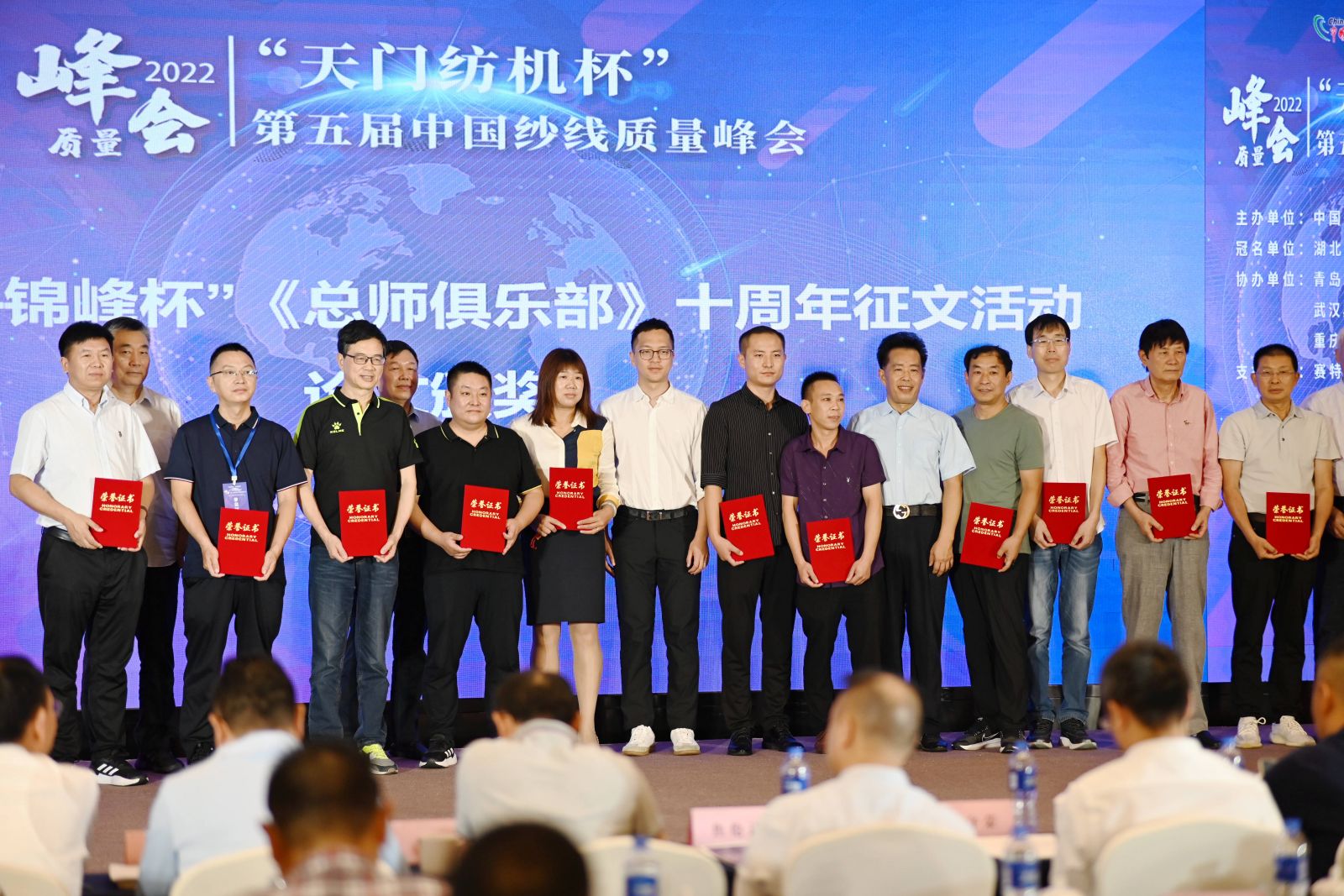 隨后,大會隆重舉行了“天門紡機(jī)杯”第五屆中國紗線質(zhì)量峰會論文頒獎活動和“烏斯特-錦峰杯”《總師俱樂部》十周年征文頒獎活動。