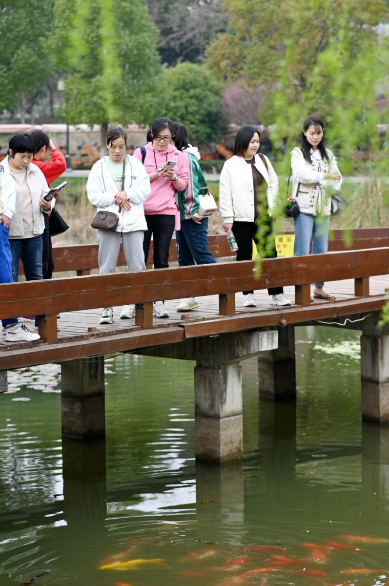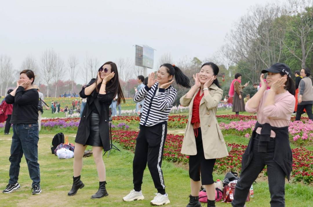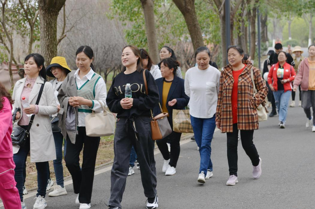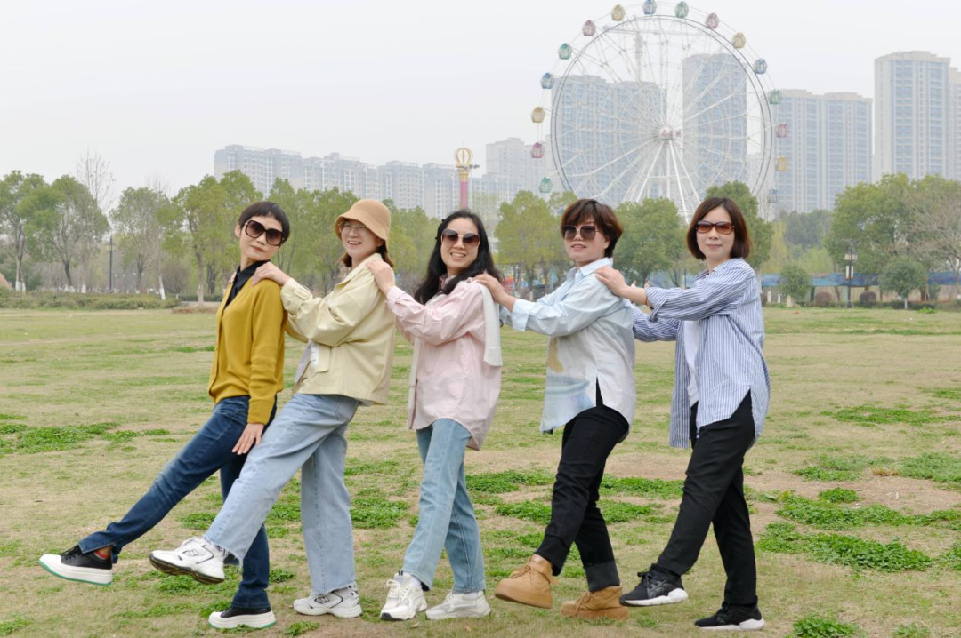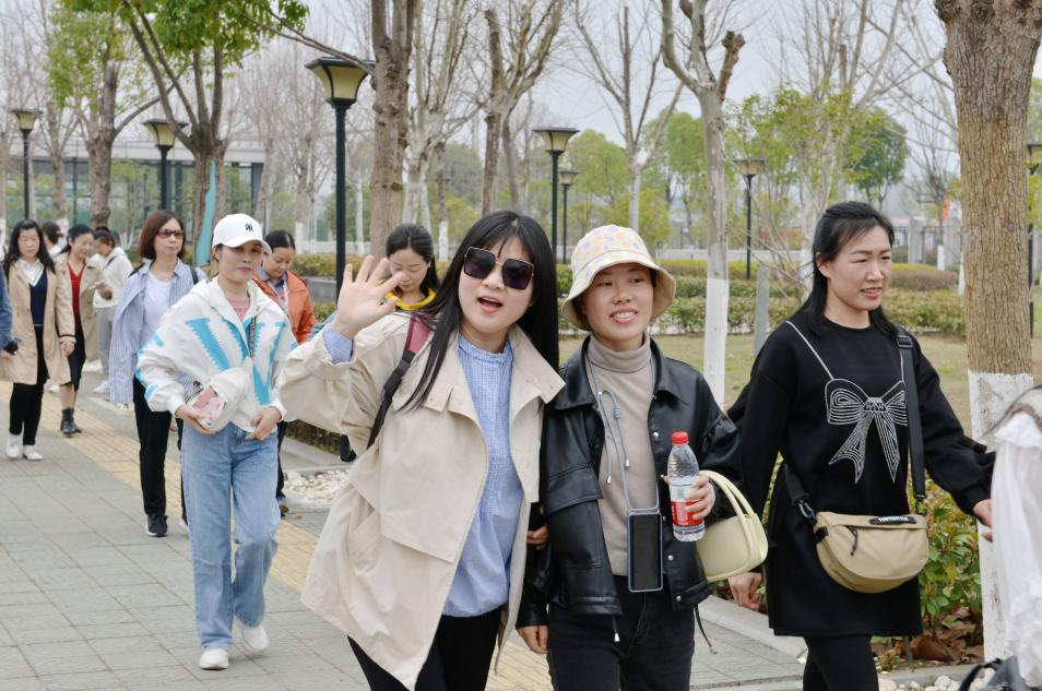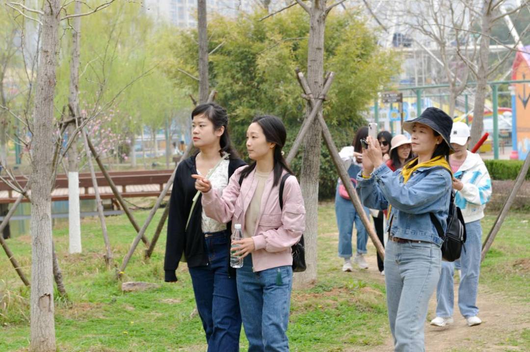 伴隨徐徐春風,“娘子軍”踏上了旅程。大巴上,大家一起玩游戲,唱車載KTV,一路洋溢著歡聲笑語,轉眼便抵達第一站——后官湖國家濕地公園。