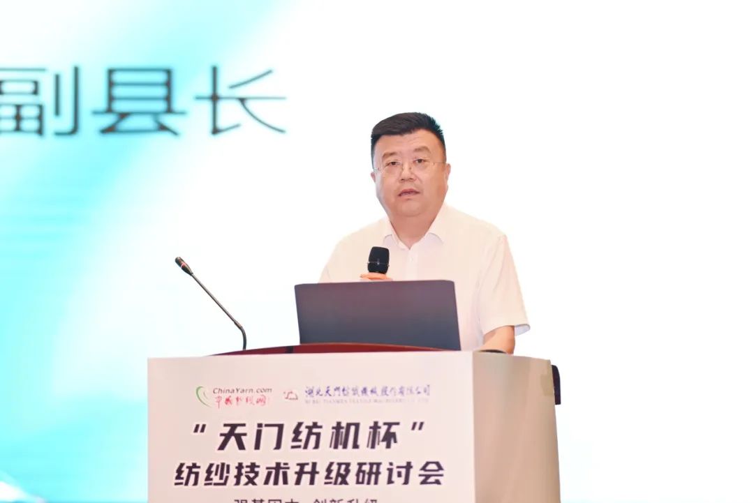 在當天下午舉行的開幕式及主題報告會上,沛縣縣委常委、常務(wù)副縣長辛松,沛縣紡織協(xié)會會長董良騮,天門紡機總經(jīng)理焦倫進,中國紗線網(wǎng)總編王果剛等領(lǐng)導(dǎo)先后致辭。