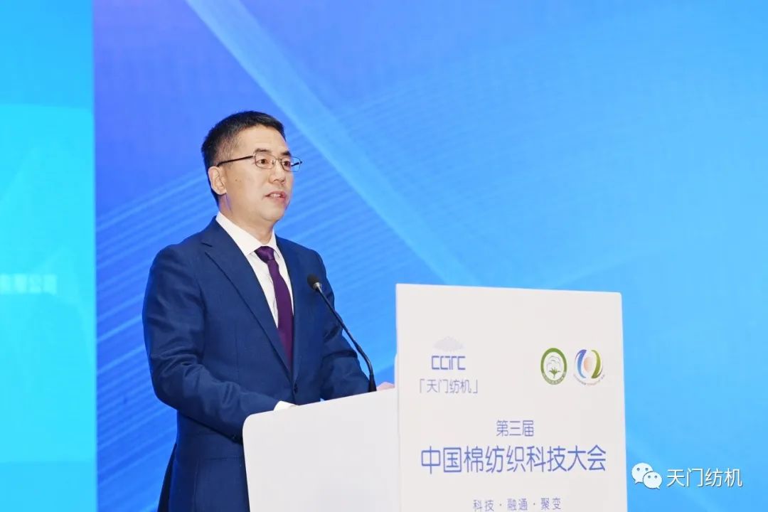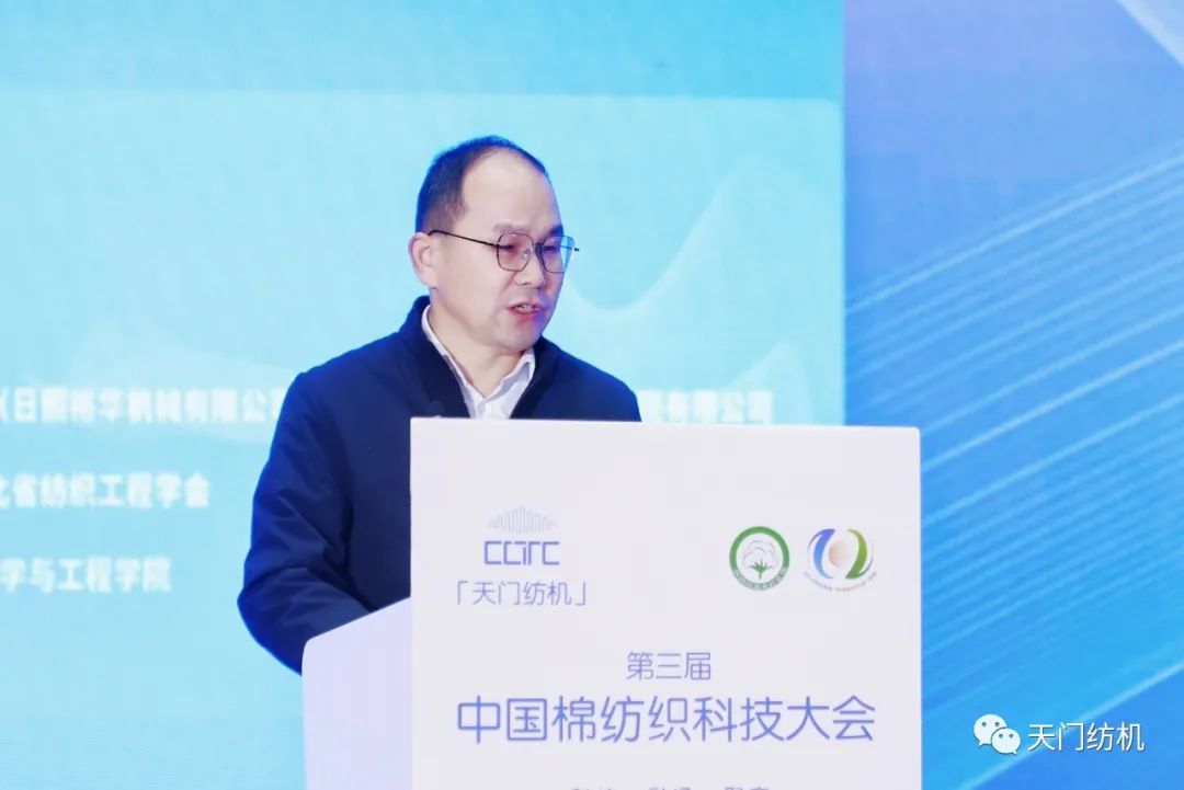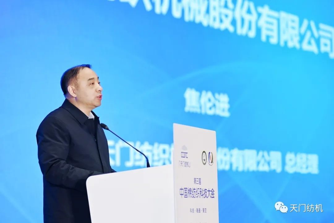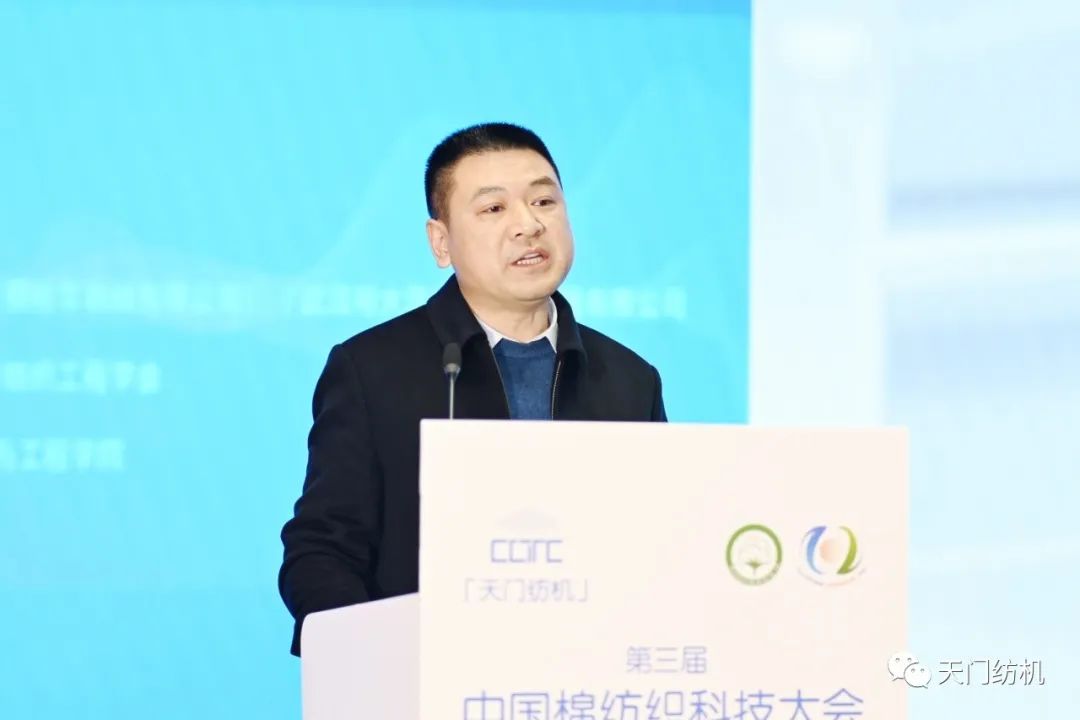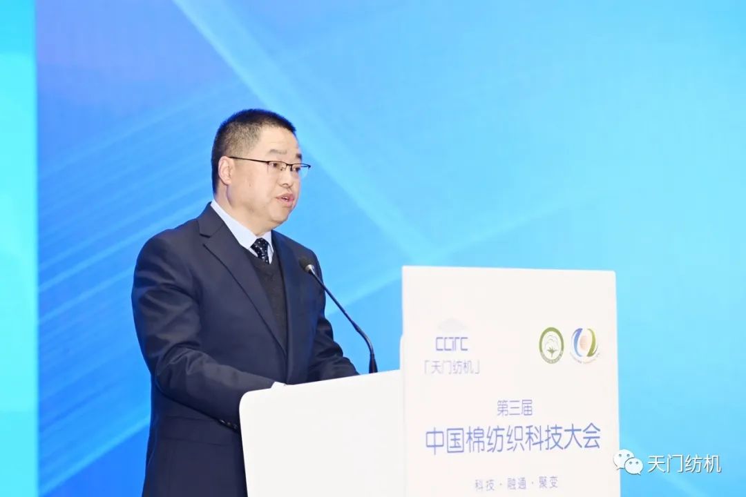 12月12日上午,中國(guó)棉紡織行業(yè)協(xié)會(huì)副會(huì)長(zhǎng)景慎全主持開(kāi)幕式,中國(guó)棉紡織行業(yè)協(xié)會(huì)會(huì)長(zhǎng)董奎勇、湖北省經(jīng)濟(jì)和信息化廳副廳長(zhǎng)周開(kāi)斌、全國(guó)棉紡織科技信息中心主任/《棉紡織技術(shù)》期刊社社長(zhǎng)王楊俊、天門(mén)紡機(jī)總經(jīng)理焦倫進(jìn)分別為大會(huì)致辭。
