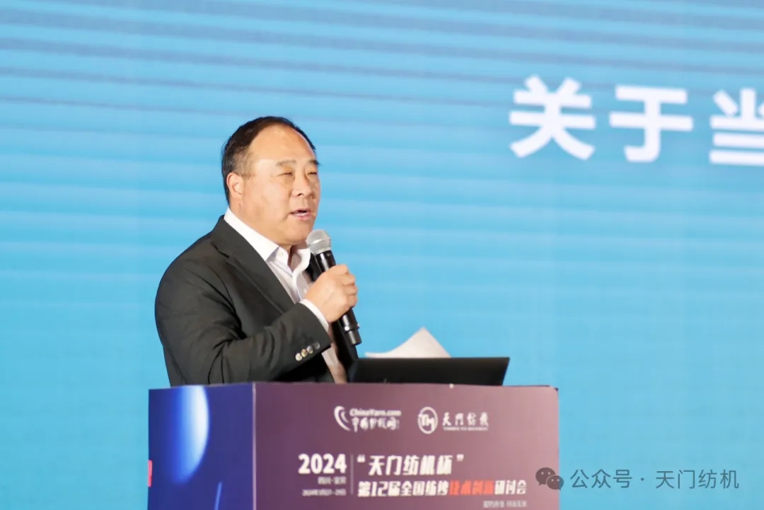公司焦倫進(jìn)總經(jīng)理介紹了天門紡機(jī)產(chǎn)品開發(fā)情況,剖析了行業(yè)形勢(shì)和企業(yè)面臨的機(jī)遇與挑戰(zhàn)。他說,天門紡機(jī)作為并條機(jī)的專業(yè)生產(chǎn)廠家,不斷加大研發(fā)投入,專注于技術(shù)創(chuàng)新和產(chǎn)品研發(fā),不斷探索新技術(shù),成功研發(fā)并推向市場的TM11、TM13、TM15、TM17系列并條機(jī)已成為行業(yè)主力產(chǎn)品。公司倡導(dǎo)“并條工序全自調(diào)勻整”的理念后,推出了TM19大圈裝高速自調(diào)勻整并條機(jī),并已在多家國內(nèi)知名紡織企業(yè)推廣應(yīng)用,效果十分明顯。在2023年11月舉行的上海國際紡機(jī)展覽會(huì)上,公司推出的TM25、TM27、TM29、TM35等四款并條機(jī),因擁有智能在線檢測(cè)、一控多軸多臺(tái)、數(shù)據(jù)管理云平臺(tái)等技術(shù),引起了業(yè)界廣泛關(guān)注,得到了高度評(píng)價(jià);他強(qiáng)調(diào),2024年,紡織行業(yè)仍將處于產(chǎn)業(yè)恢復(fù)期,市場逐漸回暖。同時(shí),紡織行業(yè)正處在朝高端化、智能化、綠色化發(fā)展的轉(zhuǎn)型升級(jí)關(guān)鍵期,市場潛力大,積極向好的發(fā)展趨勢(shì)逐步顯現(xiàn)。因此,2024年將是機(jī)遇與挑戰(zhàn)并存、困難與希望同在的一年。只要我們保持定力,加強(qiáng)交流合作,群策群力,不斷推進(jìn)數(shù)字化轉(zhuǎn)型和智能化改造,加快發(fā)展新質(zhì)生產(chǎn)力,就一定能開創(chuàng)更加美好的未來。