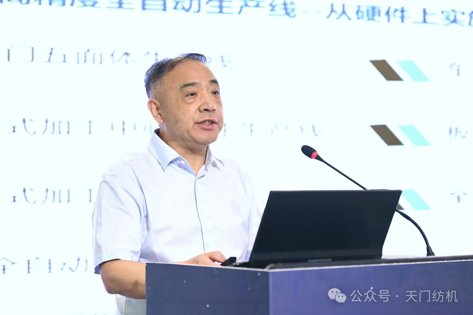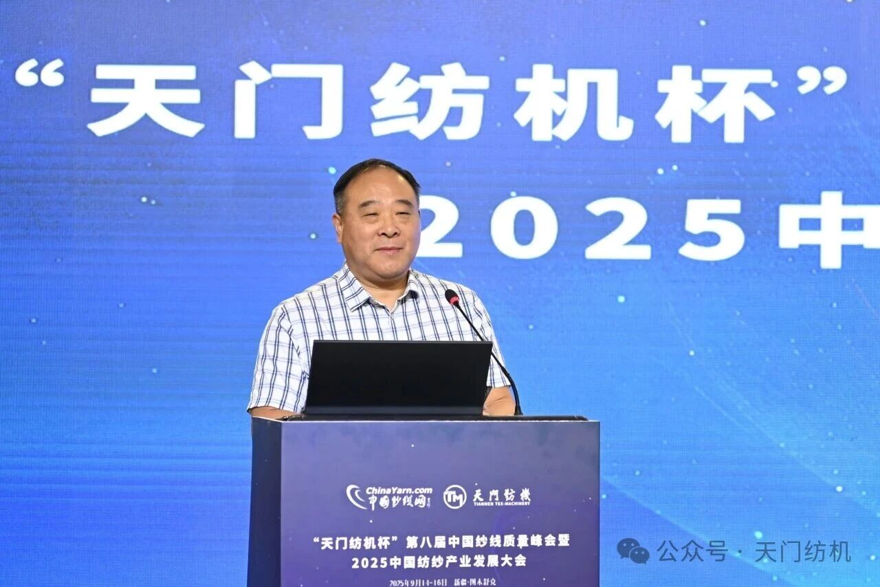 天門紡機(jī)董事長(zhǎng)沈方勇在致辭中分享了天門紡機(jī)四十余年專注并條機(jī)研發(fā),從小作坊逐步發(fā)展成為國(guó)家重點(diǎn)專精特新小巨人企業(yè)及榮獲“單項(xiàng)冠軍產(chǎn)品”稱號(hào)的現(xiàn)代化企業(yè)的奮斗歷程。他指出,當(dāng)前行業(yè)正處于重要發(fā)展窗口,本次峰會(huì)占據(jù)天時(shí)地利人和,注定會(huì)收獲滿滿。他強(qiáng)調(diào),紡織工業(yè)不僅是國(guó)家經(jīng)濟(jì)的重要支撐,更是增強(qiáng)綜合國(guó)力的關(guān)鍵力量。他呼吁,紡織同仁一定要堅(jiān)定信心、強(qiáng)化合作,以質(zhì)量為核心,共同提升中國(guó)紡織裝備的國(guó)際競(jìng)爭(zhēng)力。