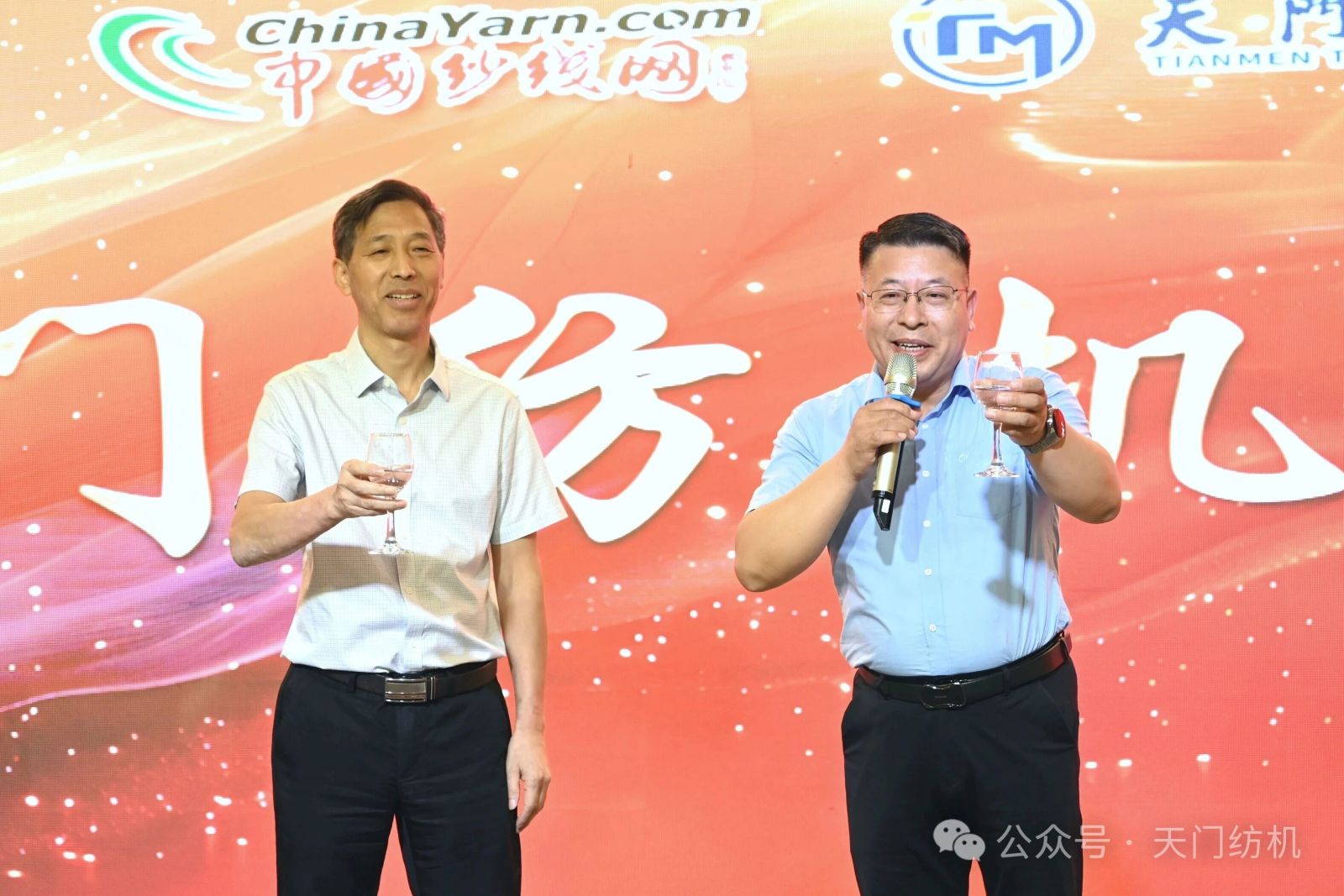 中國(guó)紗線網(wǎng)常務(wù)副總裁孫其海(左)、天門紡機(jī)市場(chǎng)總監(jiān)王繼文(右)為晚宴致辭